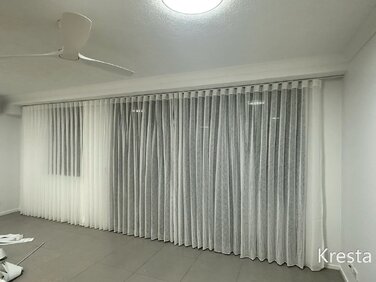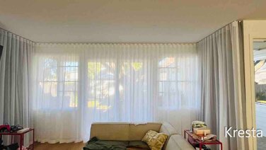 ✨Here’s a peek at how we get custom curtains up—from start to finish. #CustomCurtains #CurtainInstall #HomeStyle #KrestaBlinds