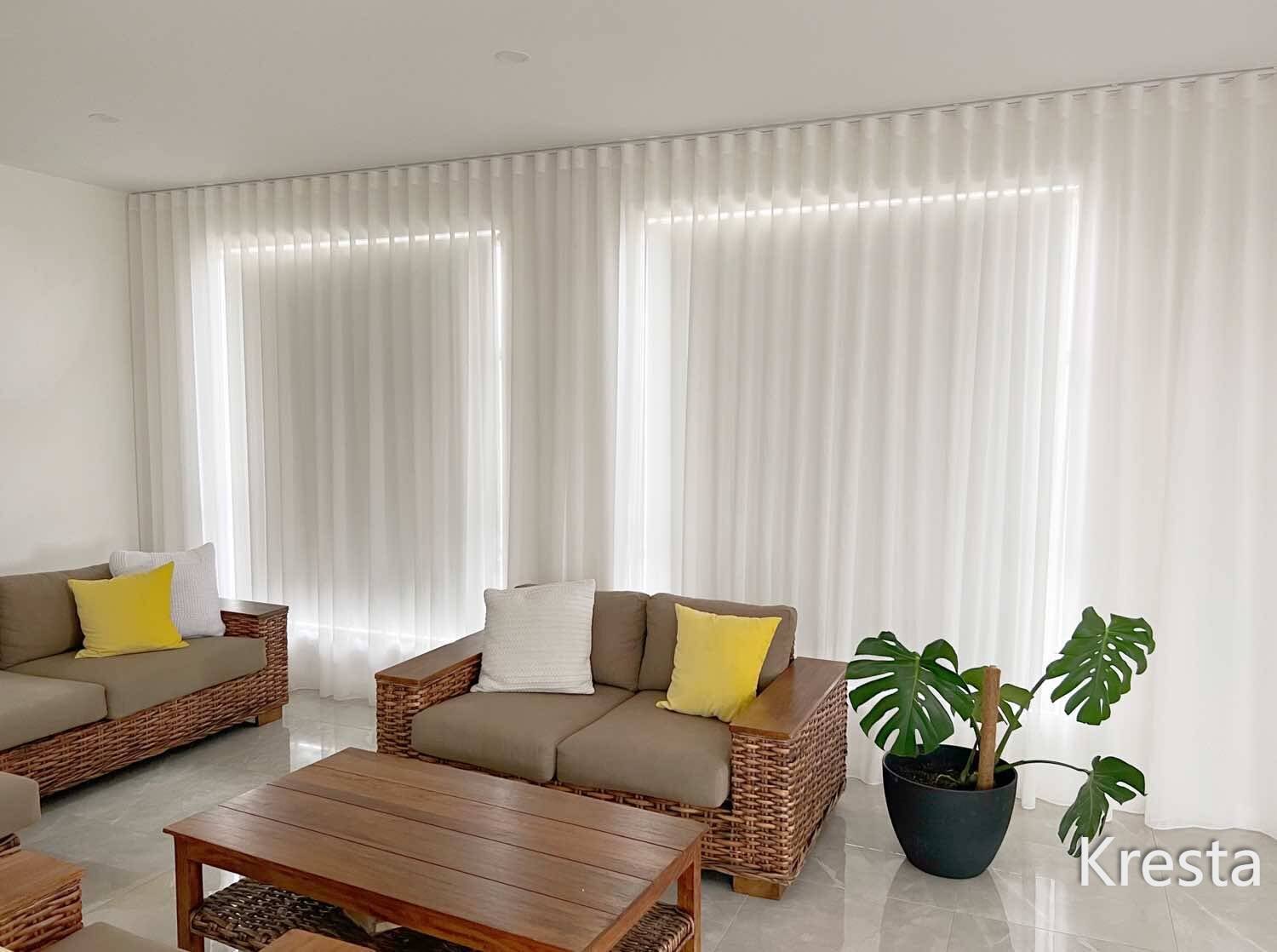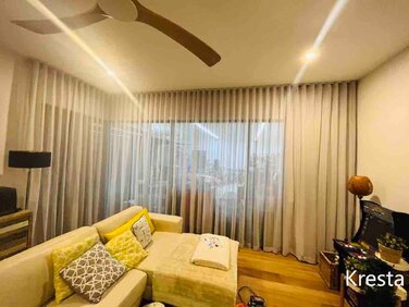 Motorized curtains + roller blinds — custom fit, quiet comfort, effortless living.