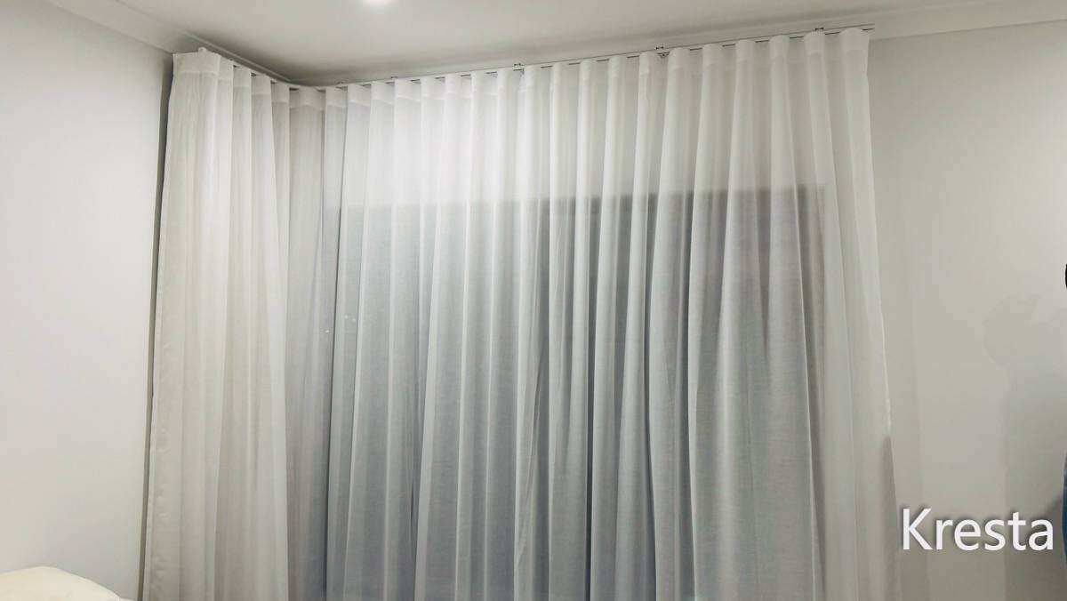 Double Track With Knife Pleat On A Corner Window